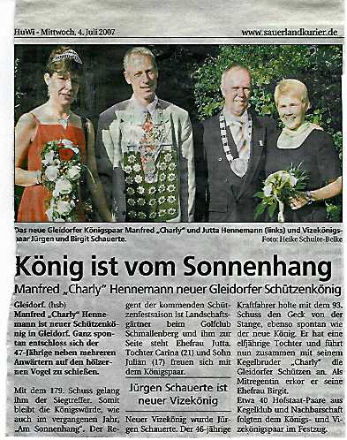 | 04.07.2007 Bericht im Sauerlandkurier zum Schützenfest |